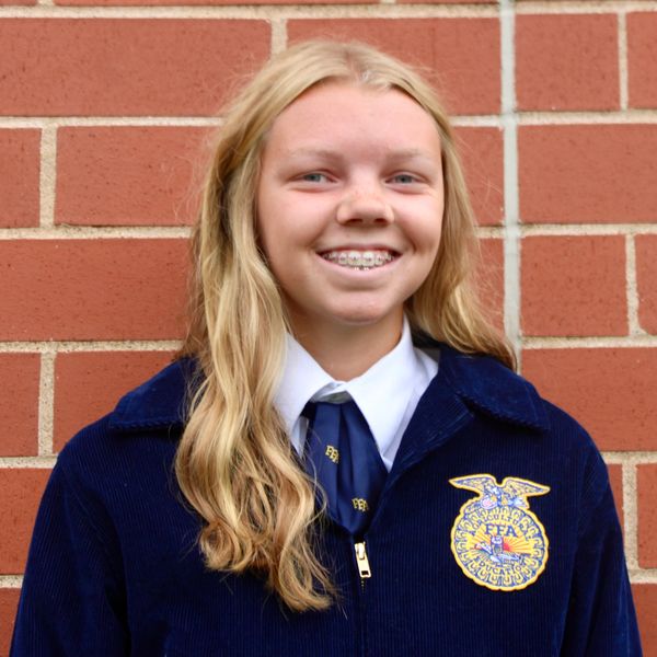 Alaina is a sophomore at Durant High School. She has been in FFA for 2 years. She has been apart of volleyball, golf, basketball, band, student council, and is her class vice president. She plans on going to a 4 year college to major in an agriculture related career. Her favorite part of FFA is how it brings people together who are passionate about agriculture and leadership.